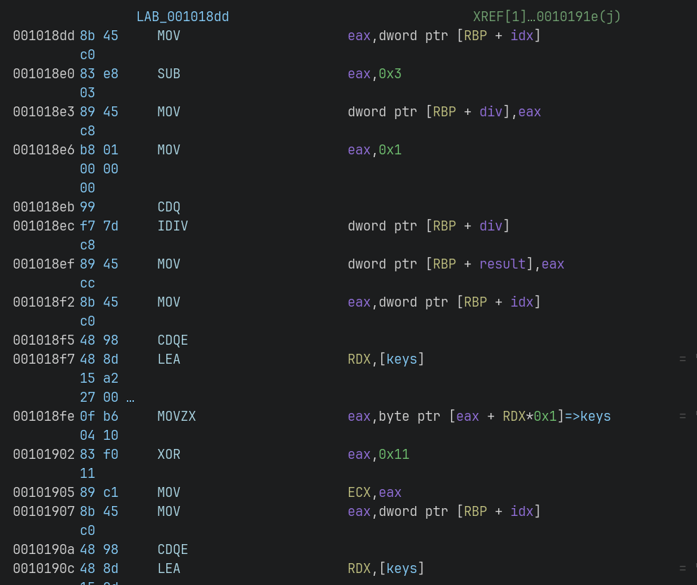 最后发现会引发异常的代码没在反编译中出现,它会打断异或处理(即只执行了前3项),
