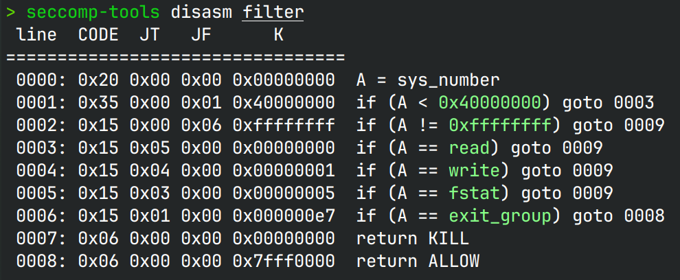 好不容易把filter拿出来了,让seccomp-tools解析一下,却发现goto跳转的目标行号,