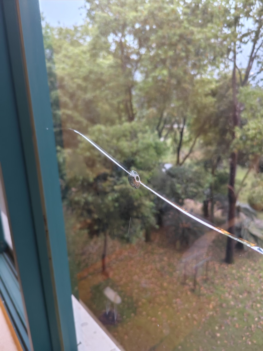 酒店房间玻璃上有弹孔😨