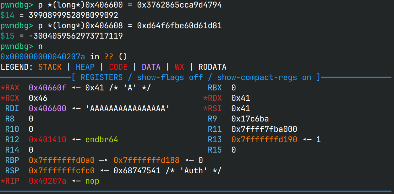 if __name__ == "__main__": key = b"0123456789ABCDEF" plaintext = b"A" * 16 ciphertext = aes_encrypt_block(plaintext, key) print("Plain :", plaintext) print("Cipher:", hex(u64(ciphertext[:8])), hex(u64(ciphertext[8:])))