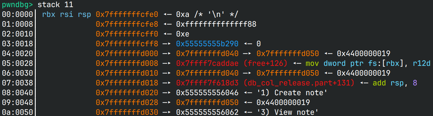 在__uflow过程中会free之,多一个换行符使其变为0xa,会导致 SEGV。