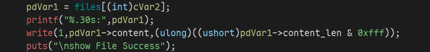 1 2 3 4 5 6 struct dirfile { char name[0x30 ]; char content[0xa0 ]; short content_len; FILE *file; };